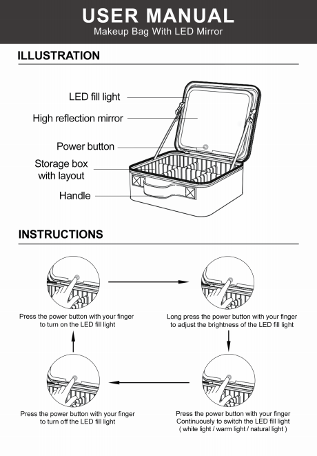 To ensure your LED makeup bag lasts for years, follow these “Golden Rules” from our manual: