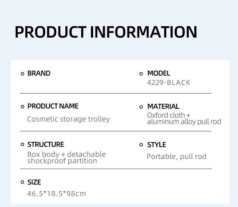Sturdy & Durable Makeup Trolley–scratch nylon fabric, durable PVC zipper pouches, high-quality buckles and accessories, smooth aluminum alloy and wheels, an excellent tools should be both practical and durable