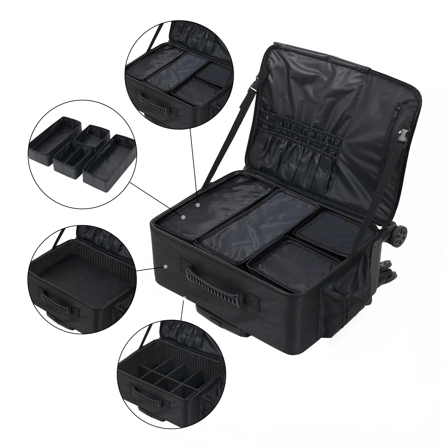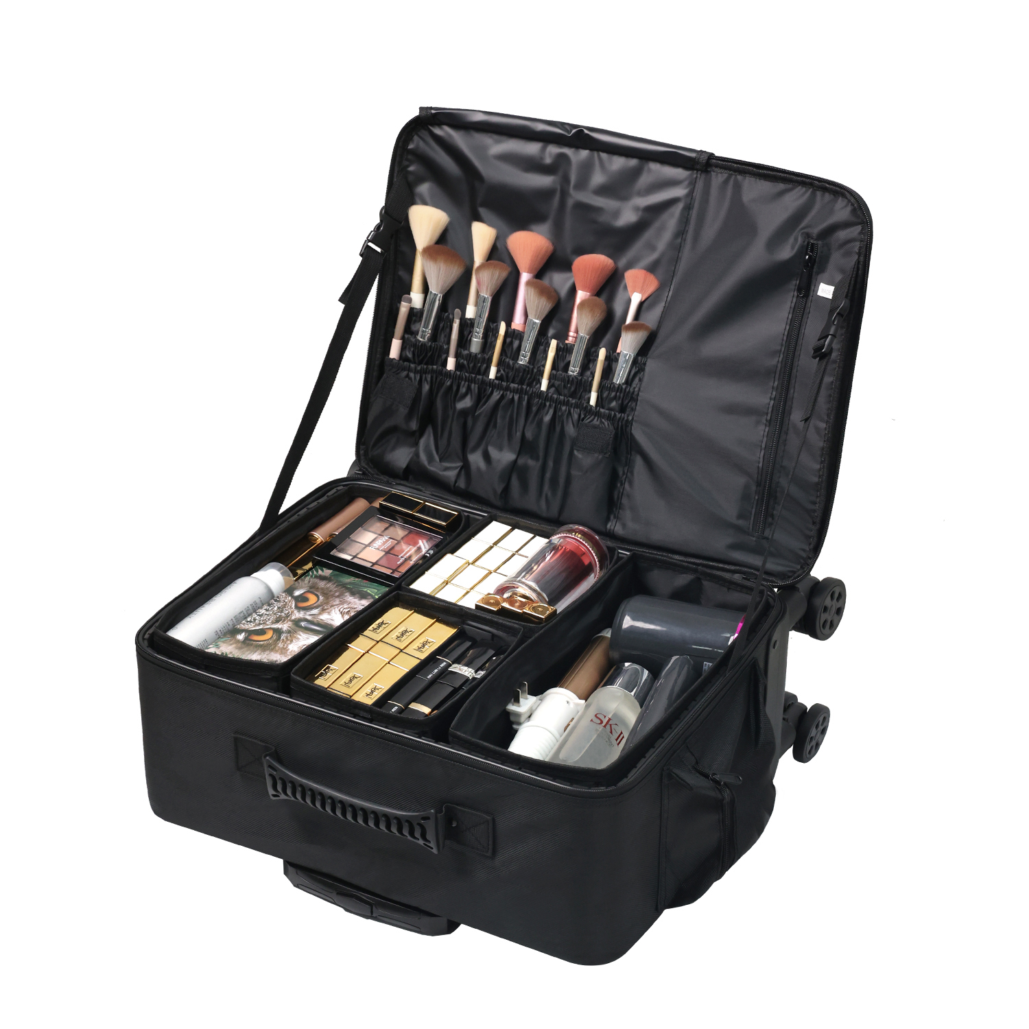 Carry On Cosmetic Luggage–Boarding sized makeup suitcase is designed for beauty business trip: 4 wheels are detachable and 360 rotating, is better for on-the-go artists to carry their expensive cosmetics on the plane than register