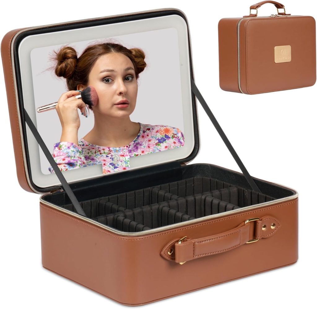 ๐๐๐๐๐ผ๐ฝ๐๐ & ๐๐๐พ๐๐๐ – Makeup Case with Lighted Mirror is designed for convenience, this large makeup bag includes an adjustable buckle with strong webbing straps, a sturdy handle for easy carrying, and a metallic dual zipper closure to keep your items safe. Our travel make up bags women are Ideal for outdoor parties, professional makeup, weddings, travel, and theatres.
