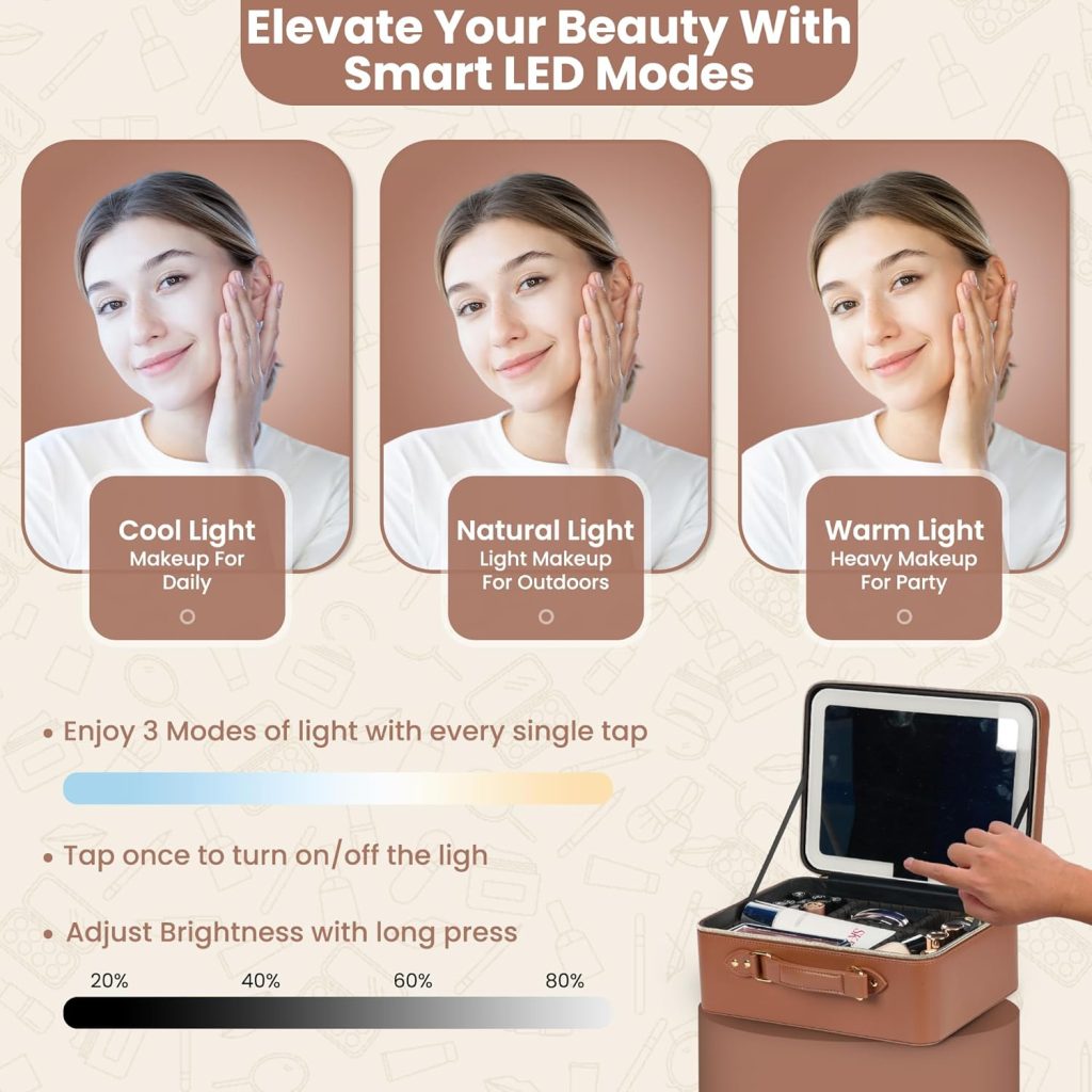 ๐๐๐ฟ ๐๐๐๐พ๐ ๐๐๐๐๐๐ – Enjoy a flawless makeup experience of makeup organizer bag with the built-in LED rechargeable mirror featuring 3 adjustable light modes (Cool, Natural, Warm). Makeup Bag with LED Mirror comes with a 2000mAh rechargeable battery, it provides up to 10 hours of light with a simple touch. Perfect for creating the ideal lighting no matter where you are.