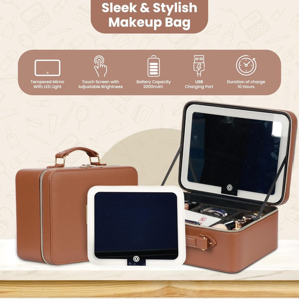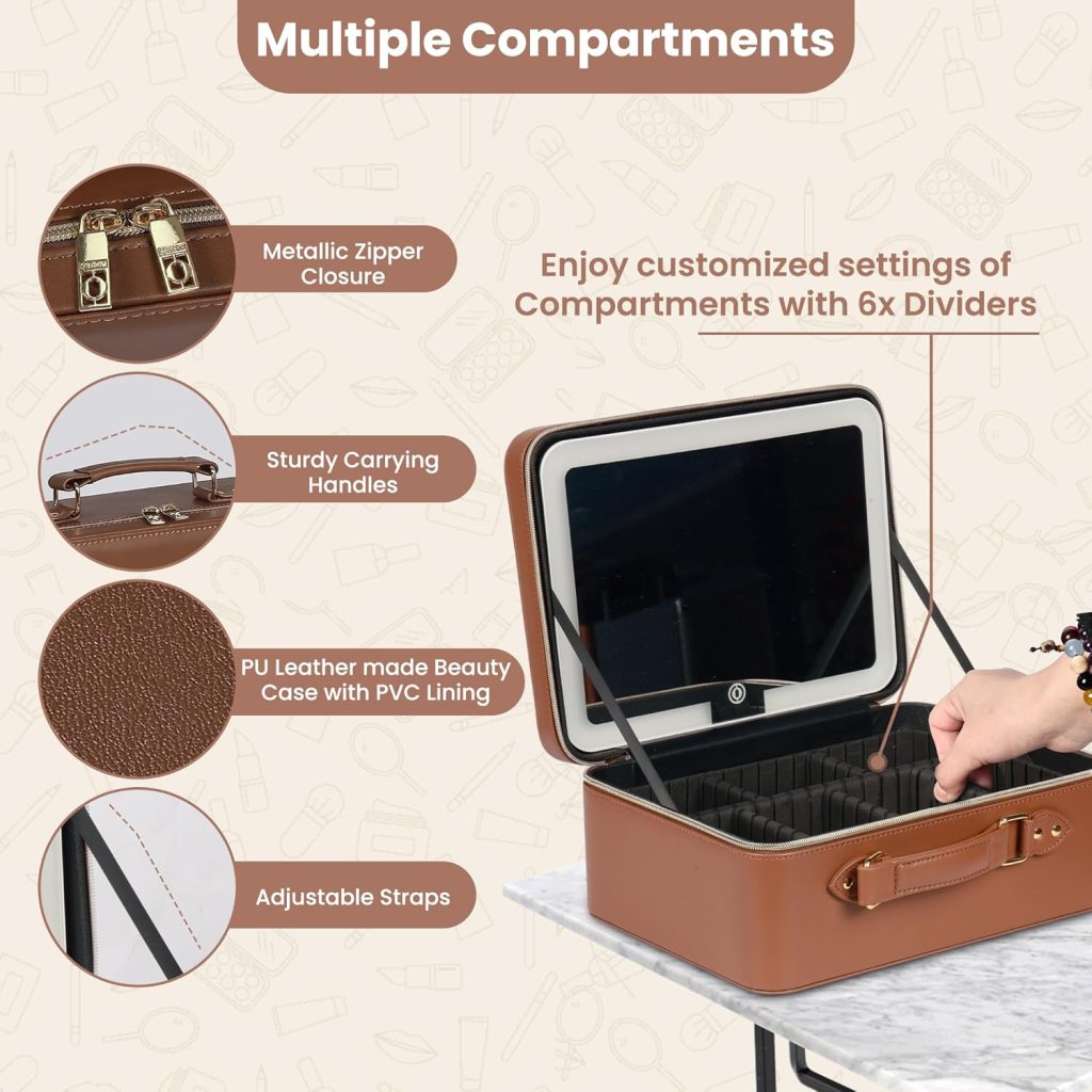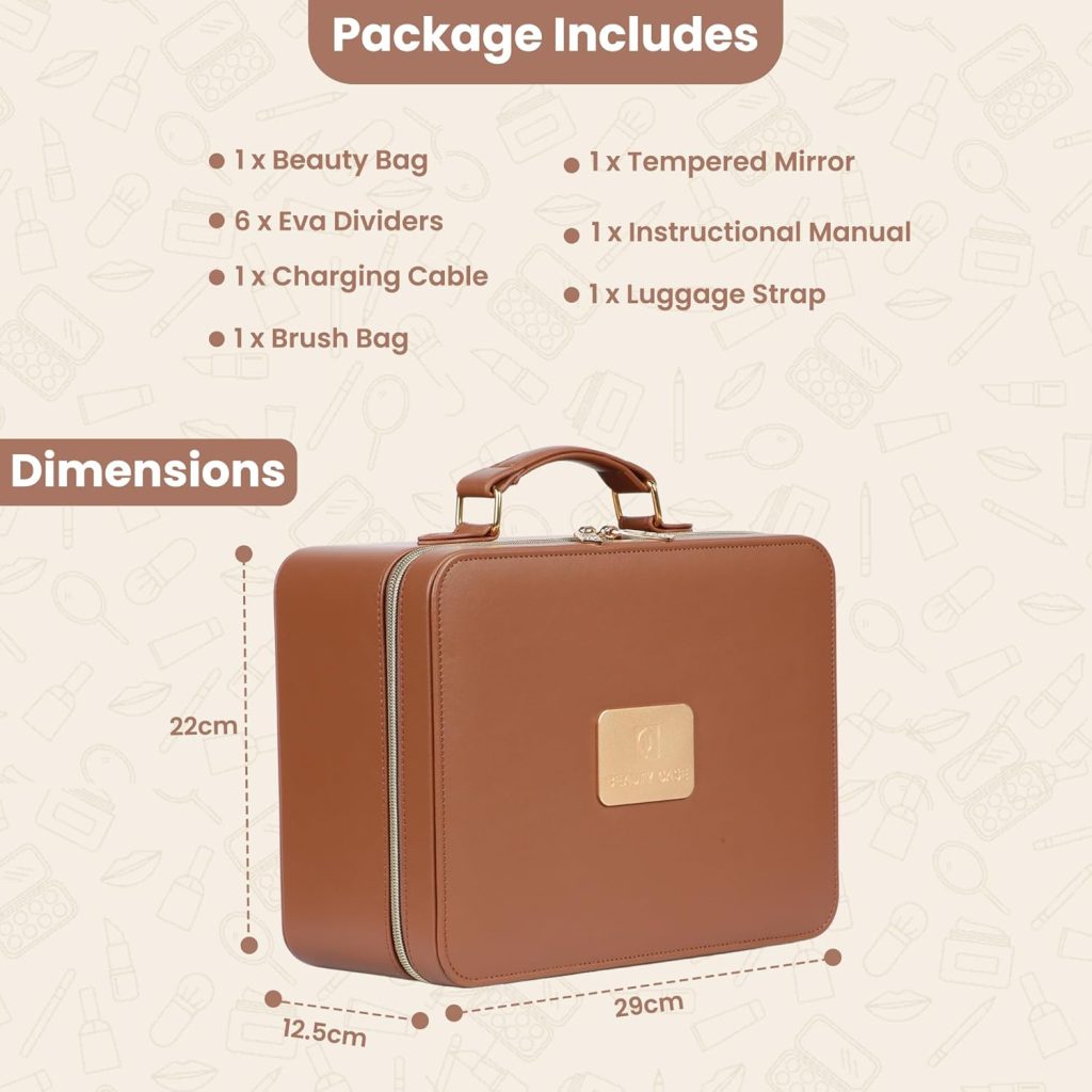 ๐๐๐ผ๐’๐ ๐๐๐พ๐๐๐ฟ๐๐ฟ – This makeup organizer travel comes in the elegant colors Black, Brown and Pink with a 1x LED touch mirror, 1x brush bag, 1x USB-C charging cable, 1x Luggage Strap to attach with luggage bag while travel and 1 x instructional manual to provide you proper guidelines about use. Our makeup organizer case would be the perfect gift for your loved ones, making them feel special on occasions like Anniversaries, Birthdays & Weddings.