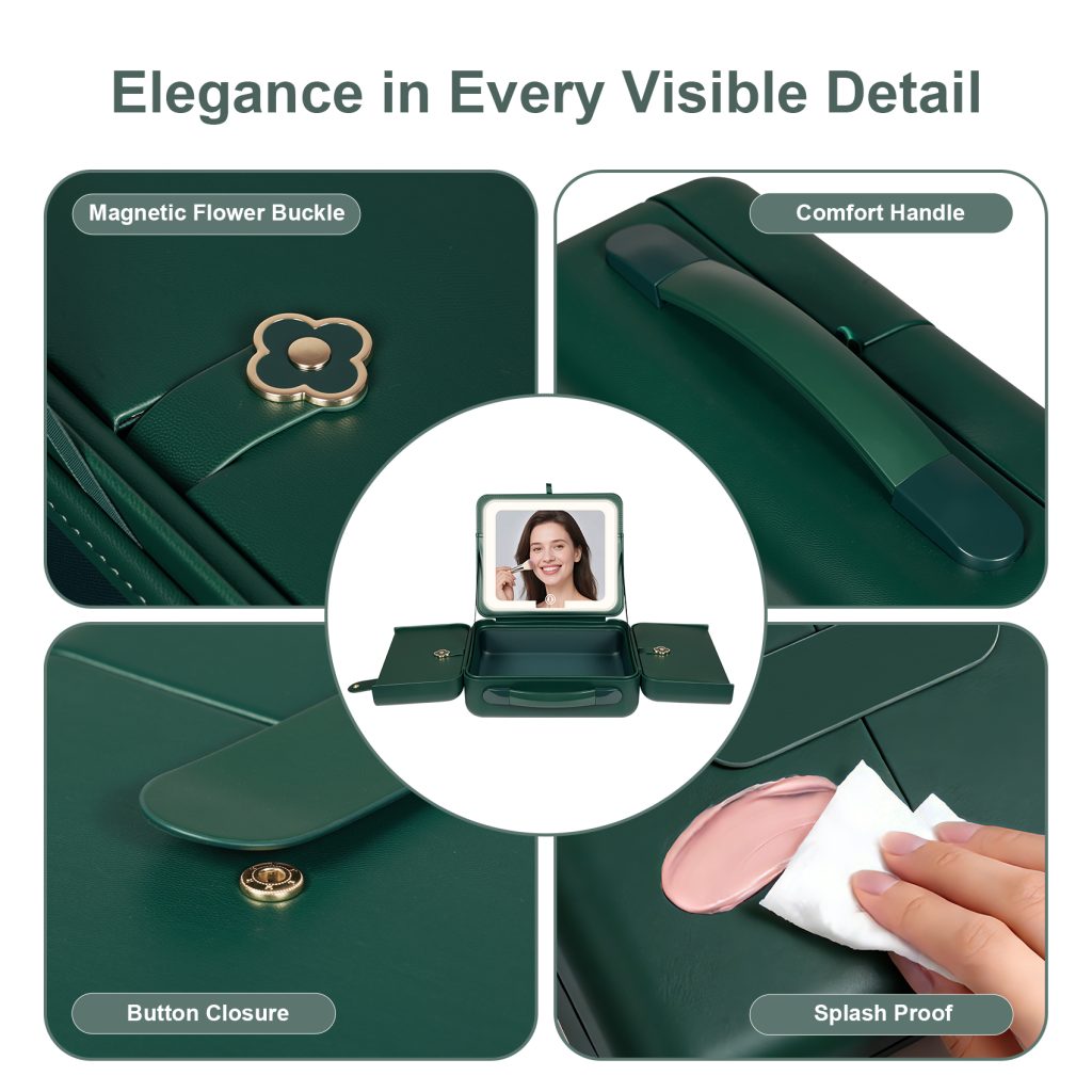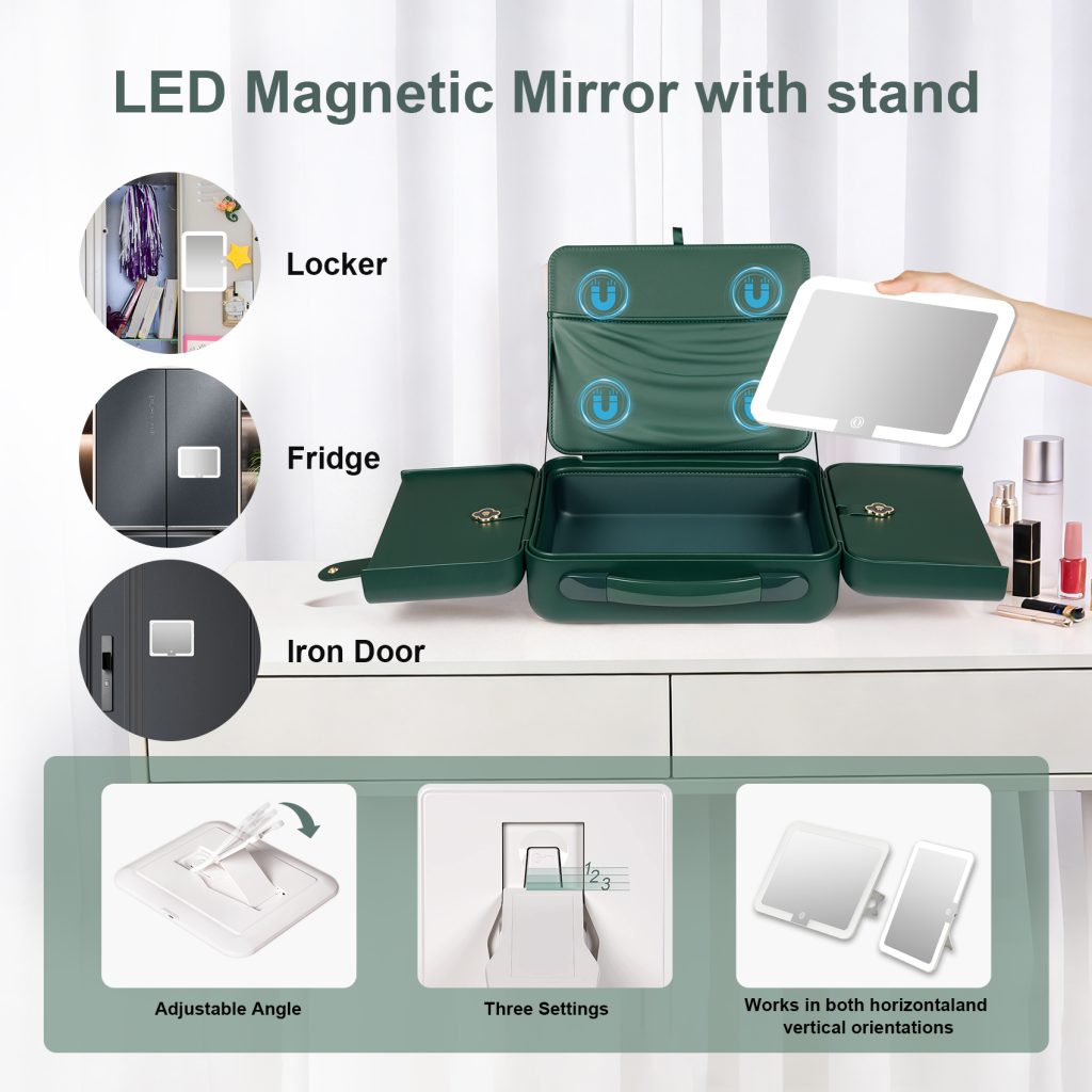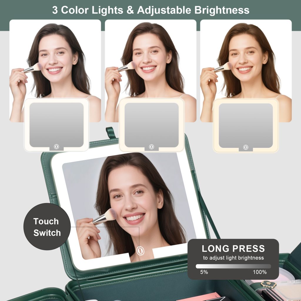 • 【4K HD Lighted Mirror with Adjustable Lighting】Enjoy flawless makeup with our 4K silver-plated mirror. Features 3 light modes (warm, natural, cool) and adjustable brightness—perfect lighting anytime, anywhere.Makeup Bag with LED Mirror comes with a 6000mAh rechargeable battery, it provides up to 30 hours of light with a simple touch, Powered by USB, rechargeable and eco-friendly.