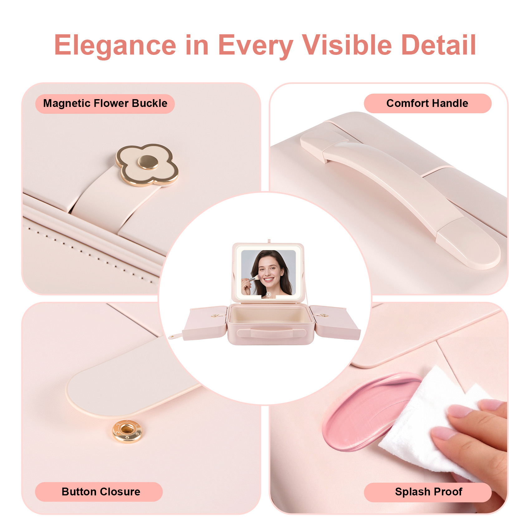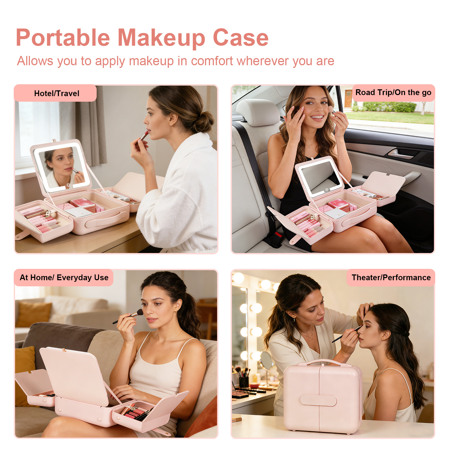 • 【Elegant & Practical Gift for Her】This makeup organizer travel bag come with a 1x makeup case, 1x USB charging cable, Sleek, modern look that’s both functional and stylish — a thoughtful gift for makeup lovers, frequent travelers, teens, moms, or friends on birthdays, holidays, or special occasions.
