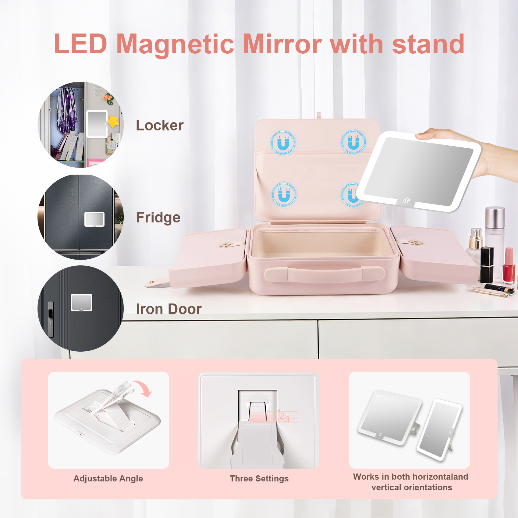 • 【180° Adjustable Angle & Secure Hinge】Metal resistance hinge allows the mirror to stay in any angle you need—no slipping or bouncing back. Freely adjust up to 180° for your comfort.