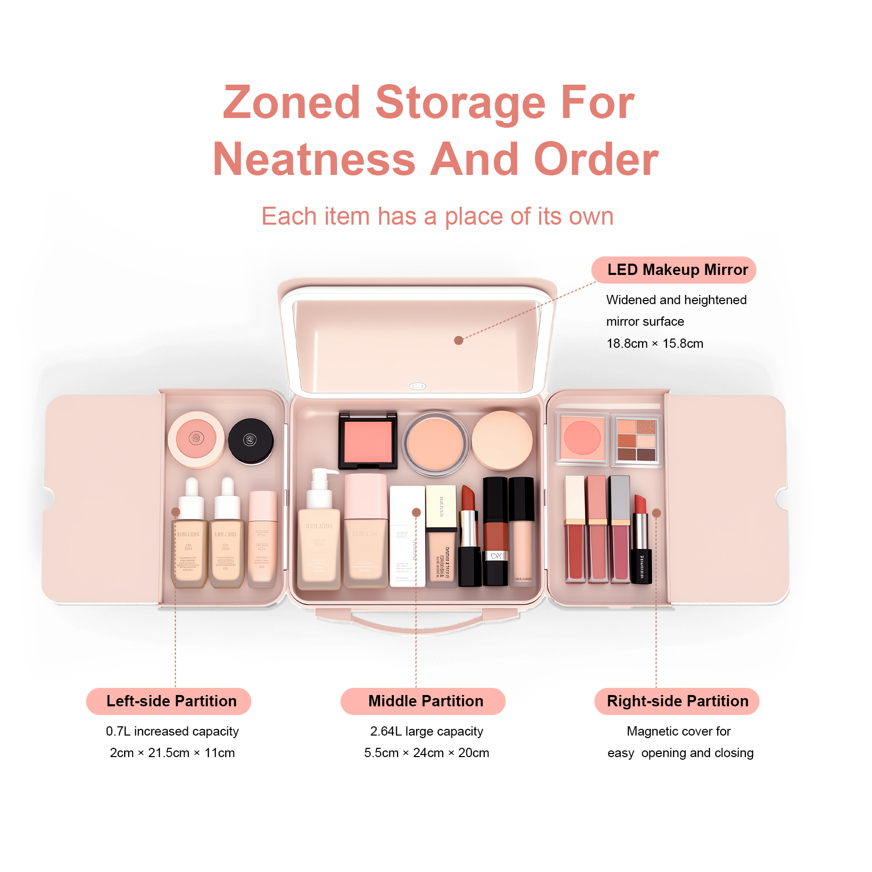 • 【Sleek & Durable ABS Shell】Our makeup case for women crafted from upgraded waterproof, scratch-resistant ABS. Reinforced with an aluminum frame, silicone base, and latch lock for ultimate protection and longevity.